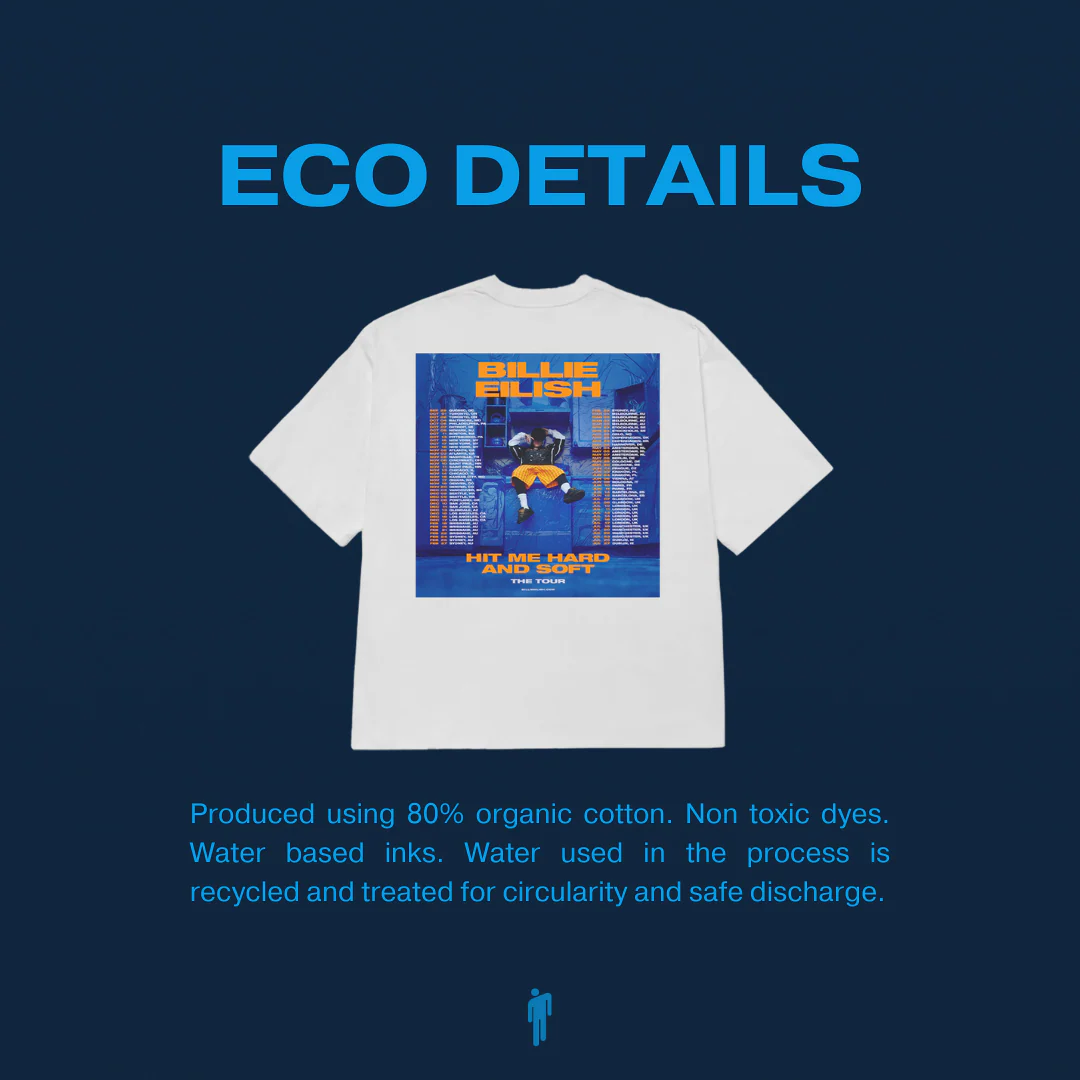 Organic, white t-shirt featuring tour dates and admat graphic from the “HIT ME HARD AND SOFT” Tour printed on the back.